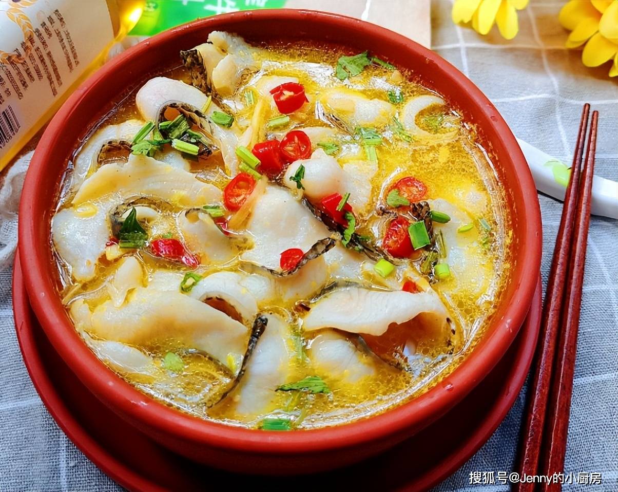 接着放入酸汤肥牛的料包,再次煮开,再放入鱼片,一片片放进去,煮三五分钟断生。