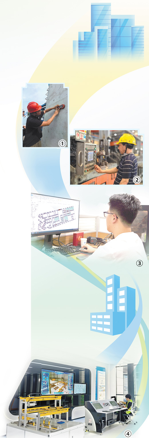 没有课桌,无需黑板,预制件生产车间被全景还原,做成了三维数字模型,“纤毫毕现”地呈于屏幕上;机器前,学生轻摇电钮,一条虚拟流水线动了起来,备料、浇筑、蒸养……经过层层工序,破解种种问题,最终“制成”一块块预制墙板。