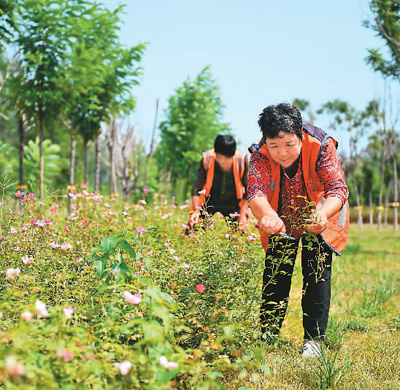 近年来,河北省隆尧县在关停尧山区域所有采石场、石灰窑的基础上,先后实施了三期矿山治理与生态修复工程,绿化面积达3000余亩,昔日满目疮痍的矿山重披“绿装”。图为工人在打理种植的花卉。 |