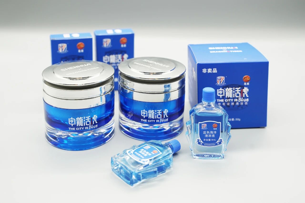 早在2005赛季,上海医药集团就与上海申花足球俱乐部达成了为期一年的合作,上海医药集团下的著名感冒药品牌——“新帕尔克”成为申花球衣胸前的第二广告。2006赛季上海申花足球俱乐部对外宣布和“上药OTC”结盟为战略伙伴关系,“新帕尔克”也继续“登陆”2006赛季申花队的战袍。时隔二十年,上海医药集团和上海申花足球俱乐部再度联手,推出“申龙活虎•The city is blue”联名款系列清凉产品。上海医药集团下属中华药业秉持着百年龙虎的品牌优势,对此次联名款系列清凉产品做了升级,主要包含蓝色海洋清凉液和申花定胜清凉膏。