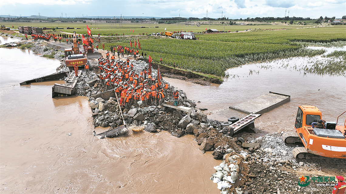 险情发生后,第79集团军某旅250余人、武警内蒙古总队赤峰支队和武警第一机动总队某支队290余人、松山区人武部200余人闻令而动,迅速驰援抢险救灾一线。在当地防汛抗旱指挥部统筹协调下,救援官兵和民兵担负道路加固、沙袋装填、堤坝巡护等任务。同时,救援部队与地方抢险救援力量通力合作,全力推进合龙进程。