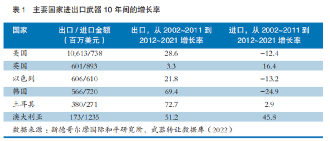 从2002~2011年到2012~2021年,土耳其的武器出口增长了72.7%,是全球武器出口国中增长率最高的;同期,土耳其的武器进口量仅有2.9%的增长(表1)。2022年,4家土耳其公司Baykar、Aselsan、TAI和Roketsan第一次被列入全球100家大型武器制造商之列,来自国内外武器销售总收入达到55亿美元,比2021年增长22%。数据和事实证明了40年前土耳其举全国之力发展国防工业自主化决策是颇具远见的。