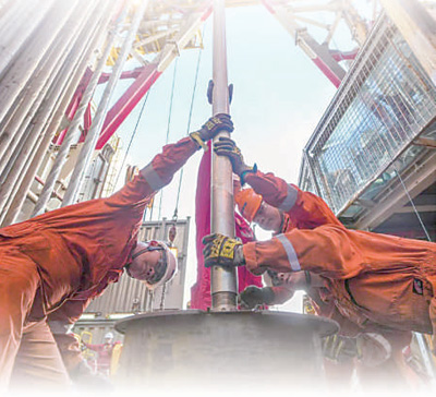 中国海油现场作业人员在海上钻井平台作业。 吴艳辉摄