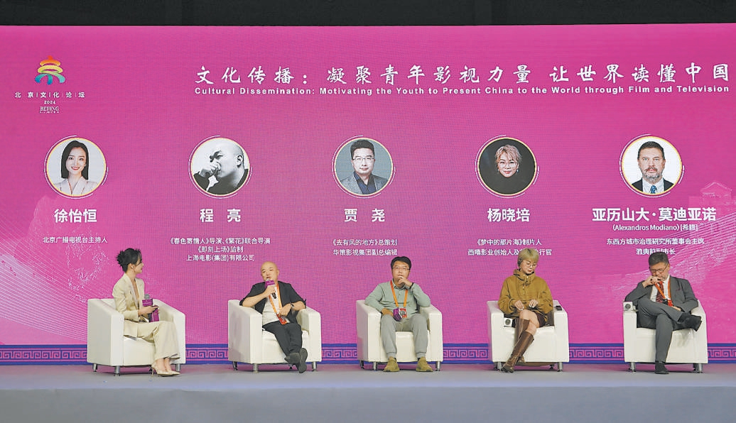 2024北京文化论坛以“文化传播:凝聚青年影视力量 让世界读懂中国”为主题的文化沙龙举办。图为以《影视青春化表达助力城市文化品牌建设》为主题的圆桌论坛。记者 程功摄