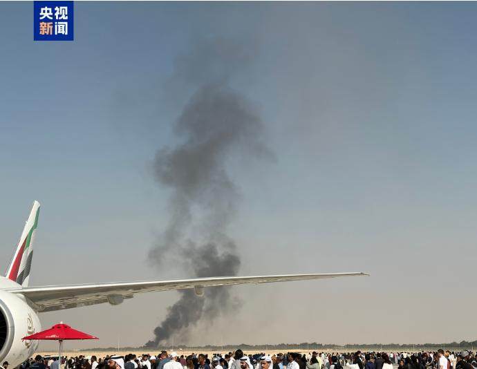 2025年迪拜航展“光辉”战斗机坠毁画面。央视新闻截图