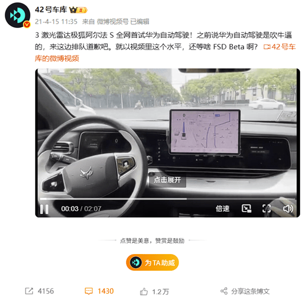 消息发布后,又不少人很急,疯狂表示咋看不到“遥遥领先”,劝你不要急,因为此次入选的北汽极狐阿尔法S6 L3版使用的正是华为乾崑辅助驾驶方案。