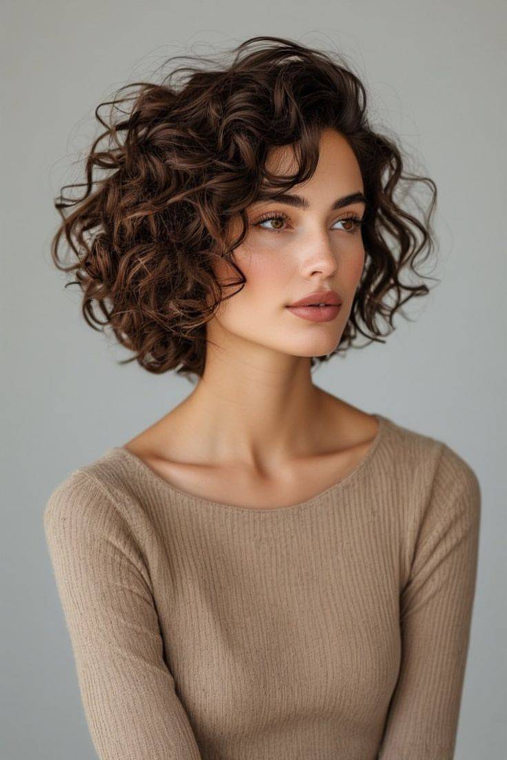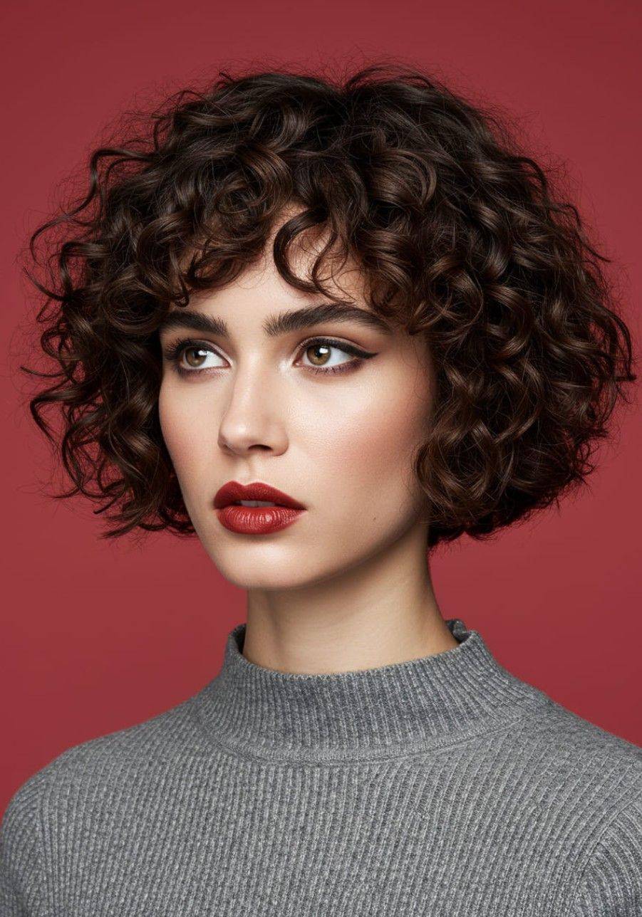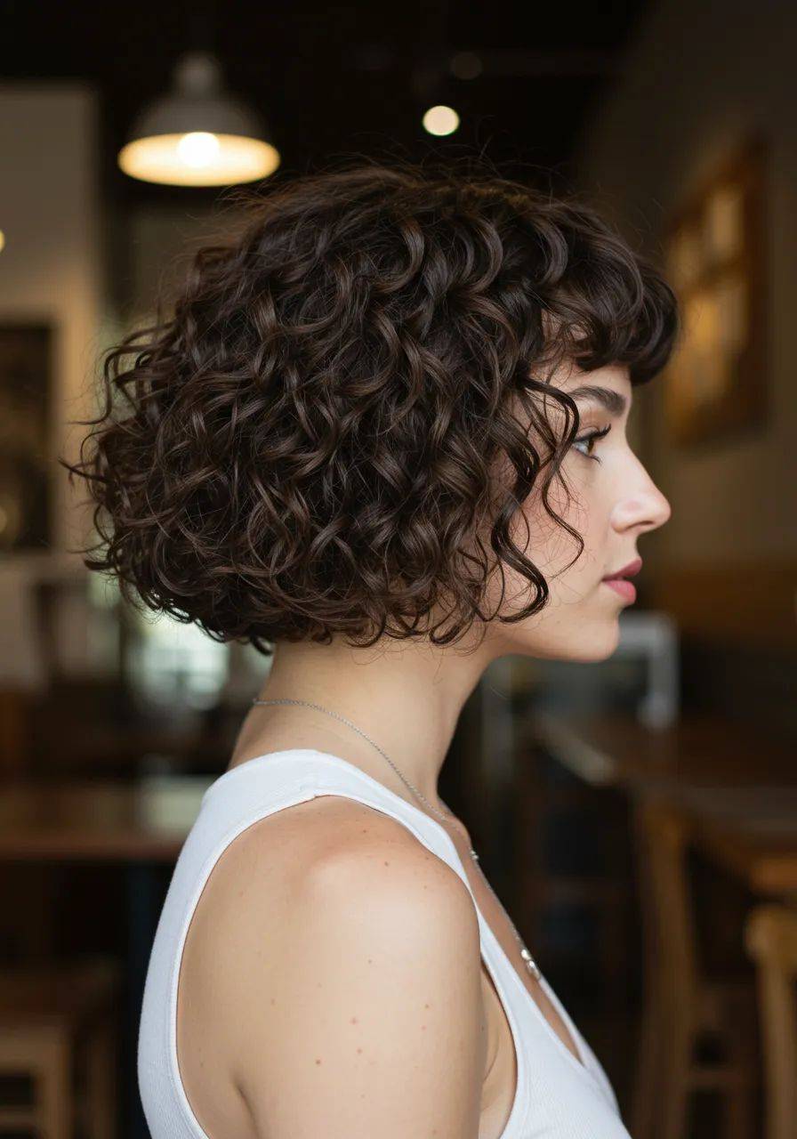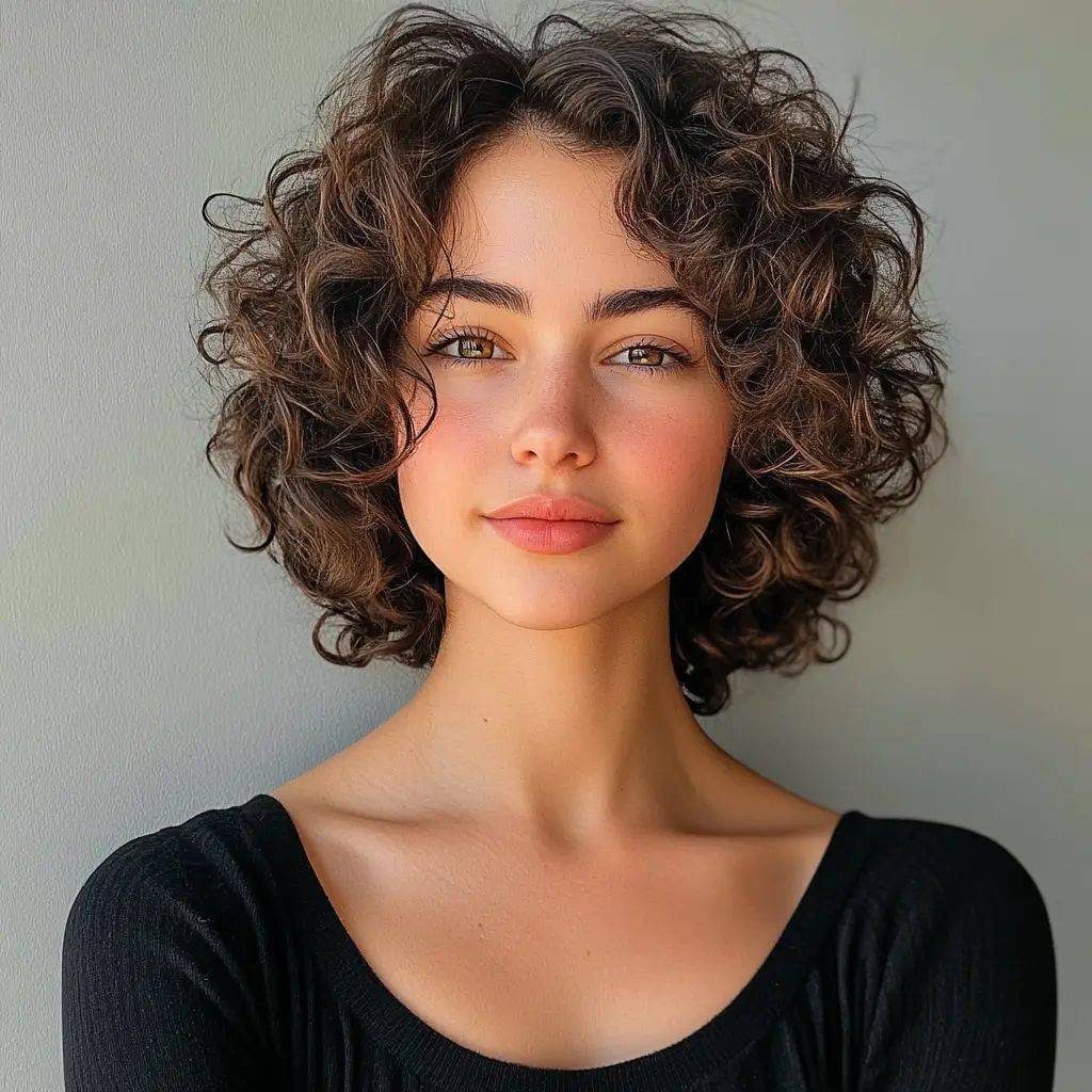 像那种类似“羊毛卷”的密集小卷短发,卷度细密且均匀,每一缕发丝都以紧凑的弧度缠绕,长度恰好停在耳下,层次的裁剪让卷发在静态中也透着灵动。