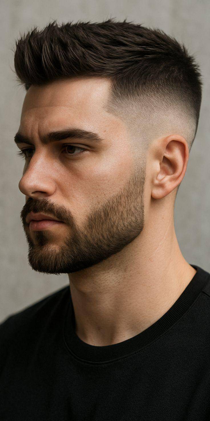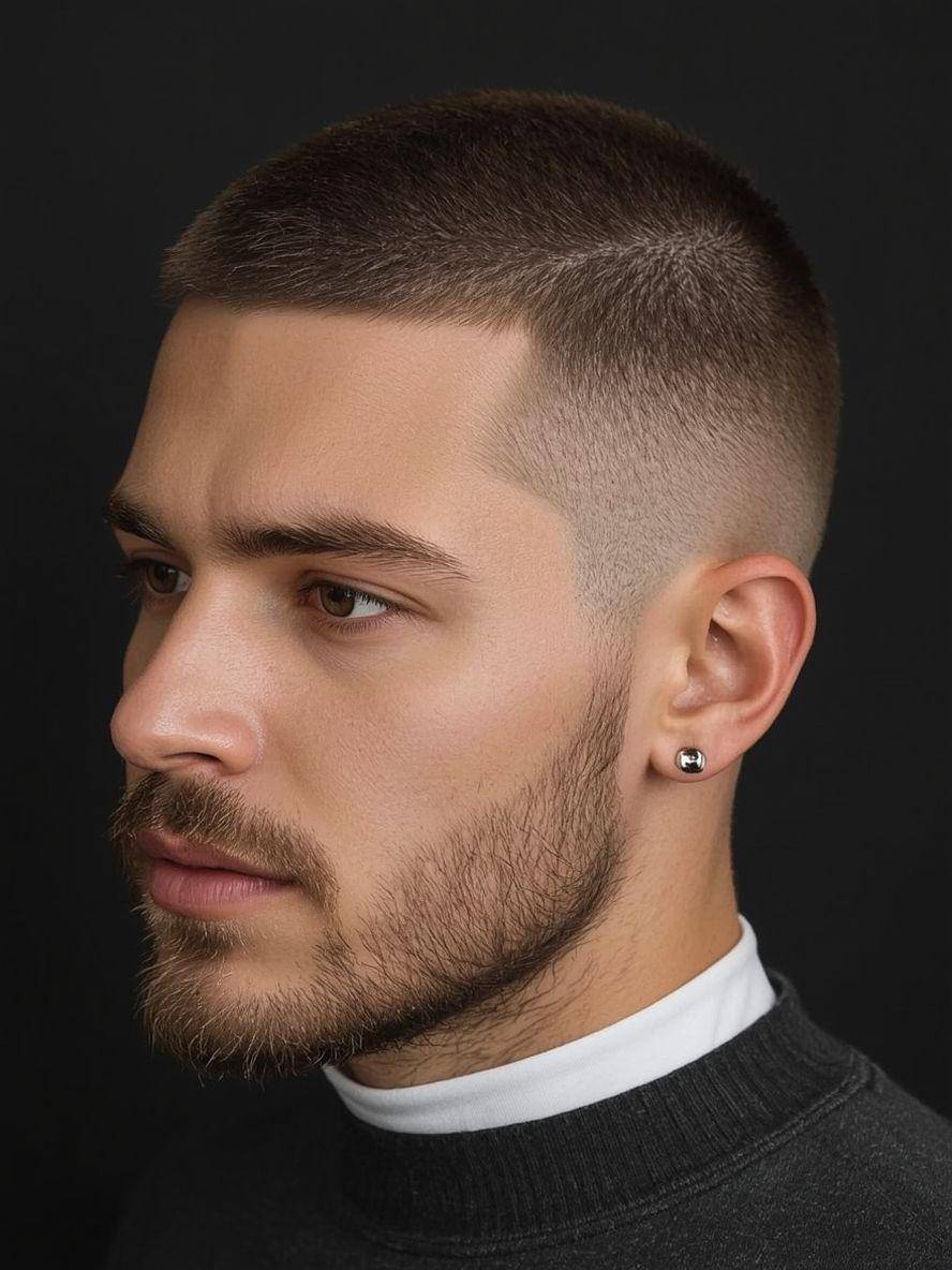 基础渐变寸头最为经典,两侧及后脑头发从贴近头皮的极短长度(通常0.3-1mm),向顶部自然过渡,形成柔和的层次差,顶部保留3-5mm的短碎发,无需过多打理,随手抓揉便能呈现出随性利落的质感,是懒癌患者与运动达人的首选。