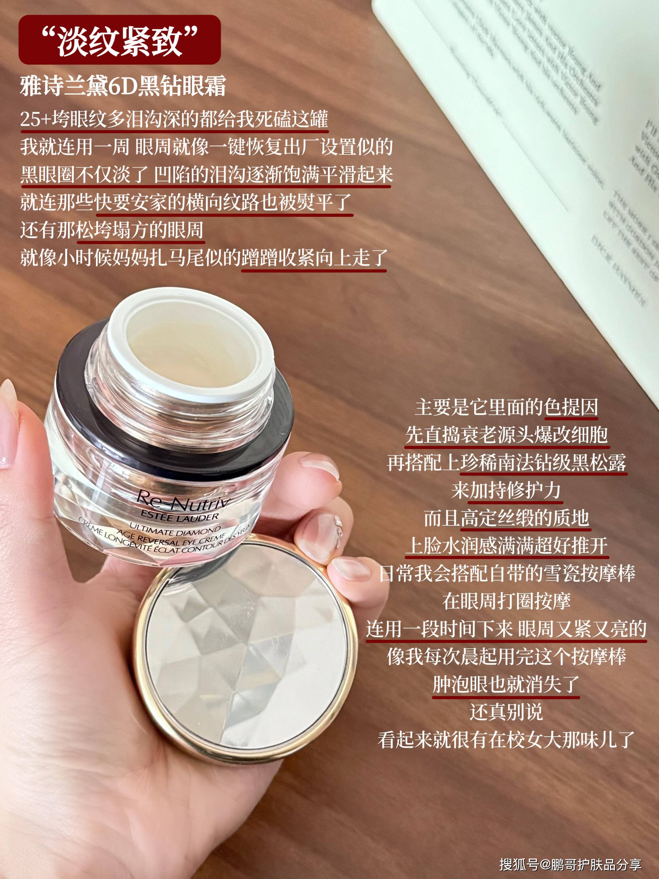 这瓶适合眼垮、细纹多,状态疲惫暗沉的姐妹,主打一个全方位结构抗老,淡纹紧致填泪沟样样行,坚持用两周照镜子真的会爽到,眼纹仿佛被熨斗烫平了,凹陷的泪沟像河豚一样嘭了起来,熬夜后的疲惫松弛感都没了,我不说谁也猜不出我几点睡。