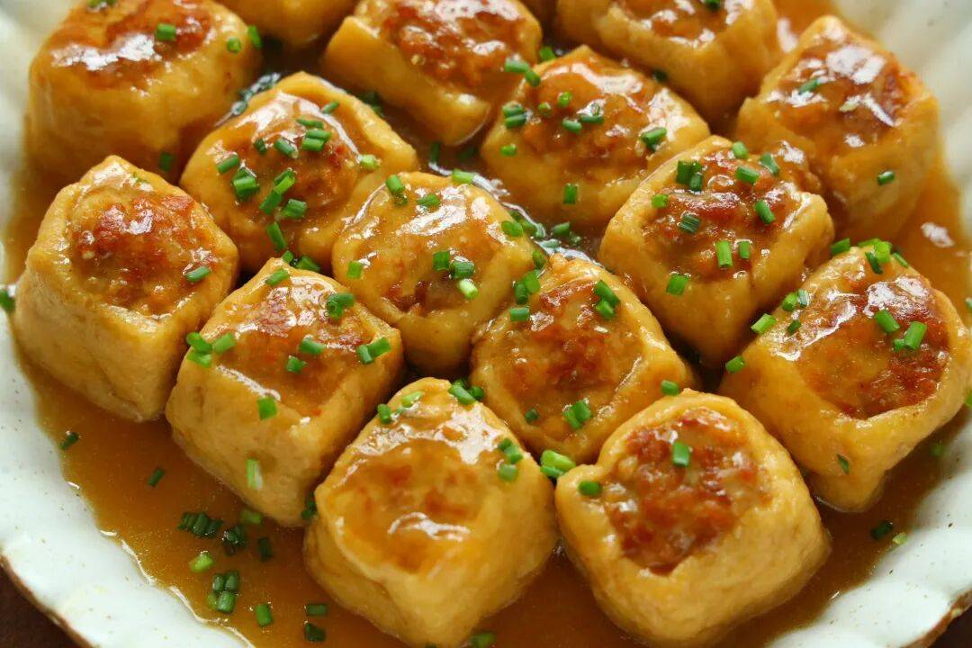 油豆腐真是个神奇的存在,金黄色的外表格外讨喜。把它和鲜嫩的肉馅搭配在一起,既保留了豆制品的清香,又融入了肉汁的鲜美。咬开时,外面的豆腐皮软韧有嚼劲,里头的肉馅却鲜嫩多汁,那种层次分明的口感实在太妙了。而且你知道吗,这样搭配既补充了优质蛋白,又吃到了豆制品的营养,真心是既解馋又不用担心负担太重。