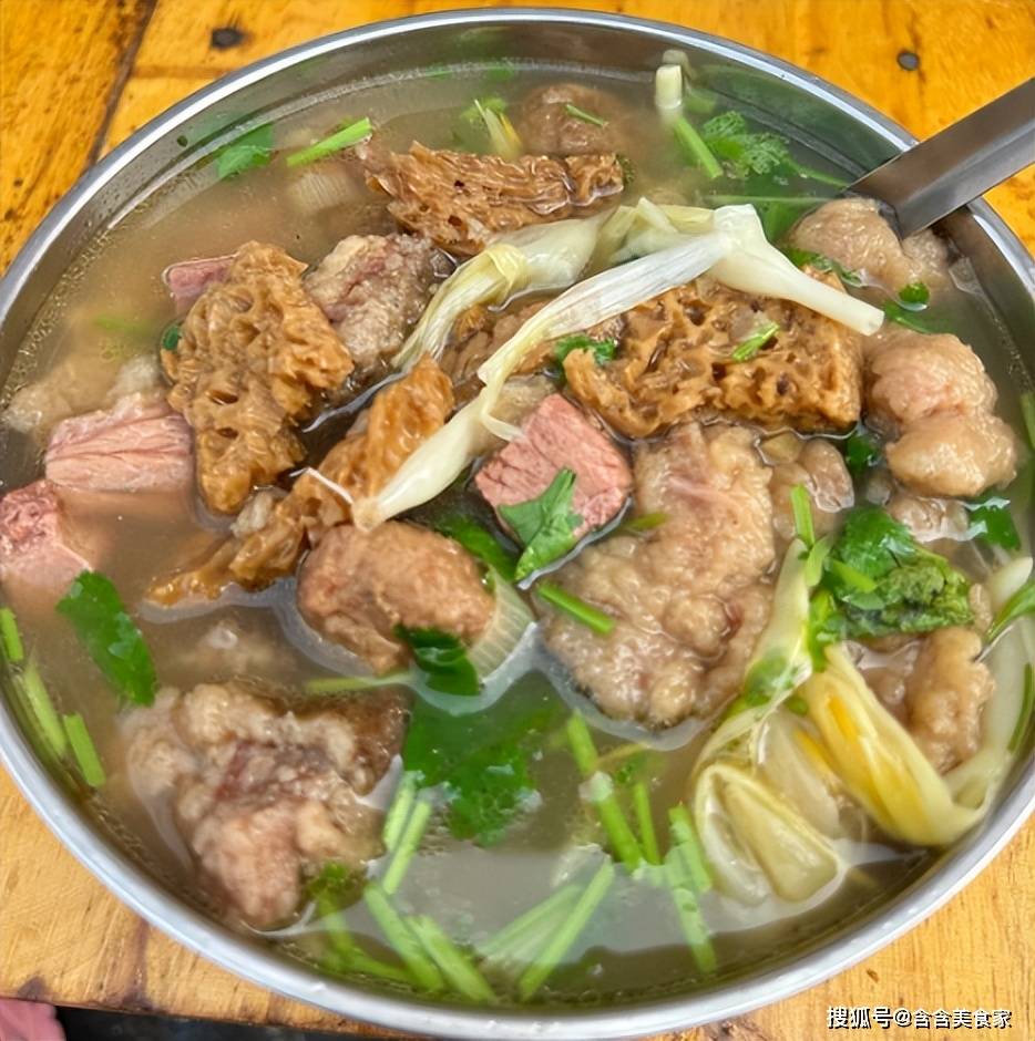 开封四味菜是一道极具地方特色的传统清真小吃,广受当地人和游客喜爱。它由黄花菜、面筋、小酥肉、牛肉丸子四种主料组成,浇上滚烫鲜美的羊肉汤,再撒上香菜,荤素搭配,汤浓味鲜,暖身又满足。许多食客表示,虽然初闻味道可能稍显独特,但入口后越吃越香,甚至会上瘾,是开封人早餐桌上的经典选择。