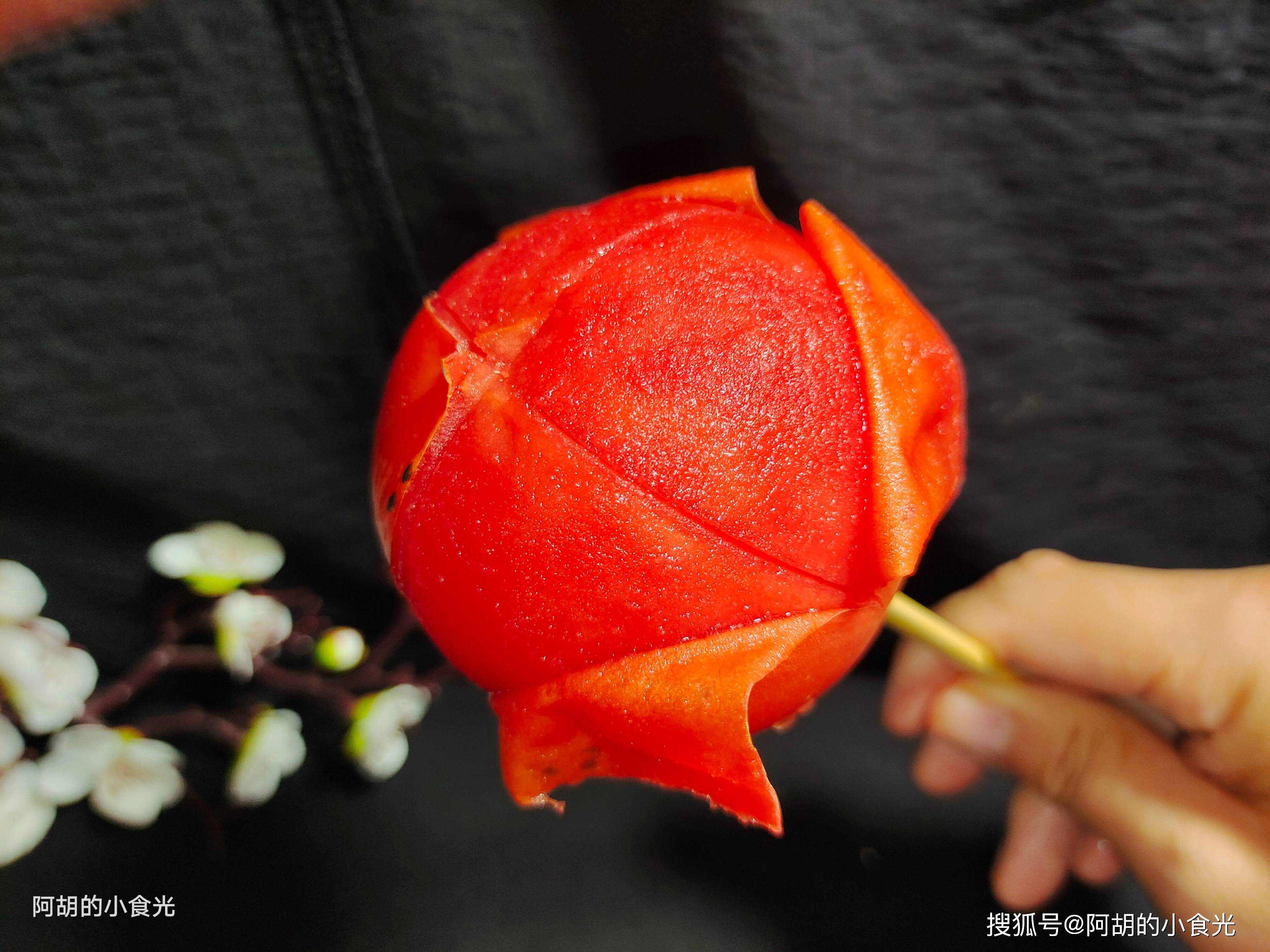 第一步:准备西红柿四个,其中两个要去皮,在西红柿的顶部划开一个十字口,而后用筷子插入底部,手持筷子把西红柿放在灶火上烤一烤,如此就可以轻松去掉西红柿皮了。而后将西红柿肉切成小丁备用。另外两个西红柿直接切成大块备用。