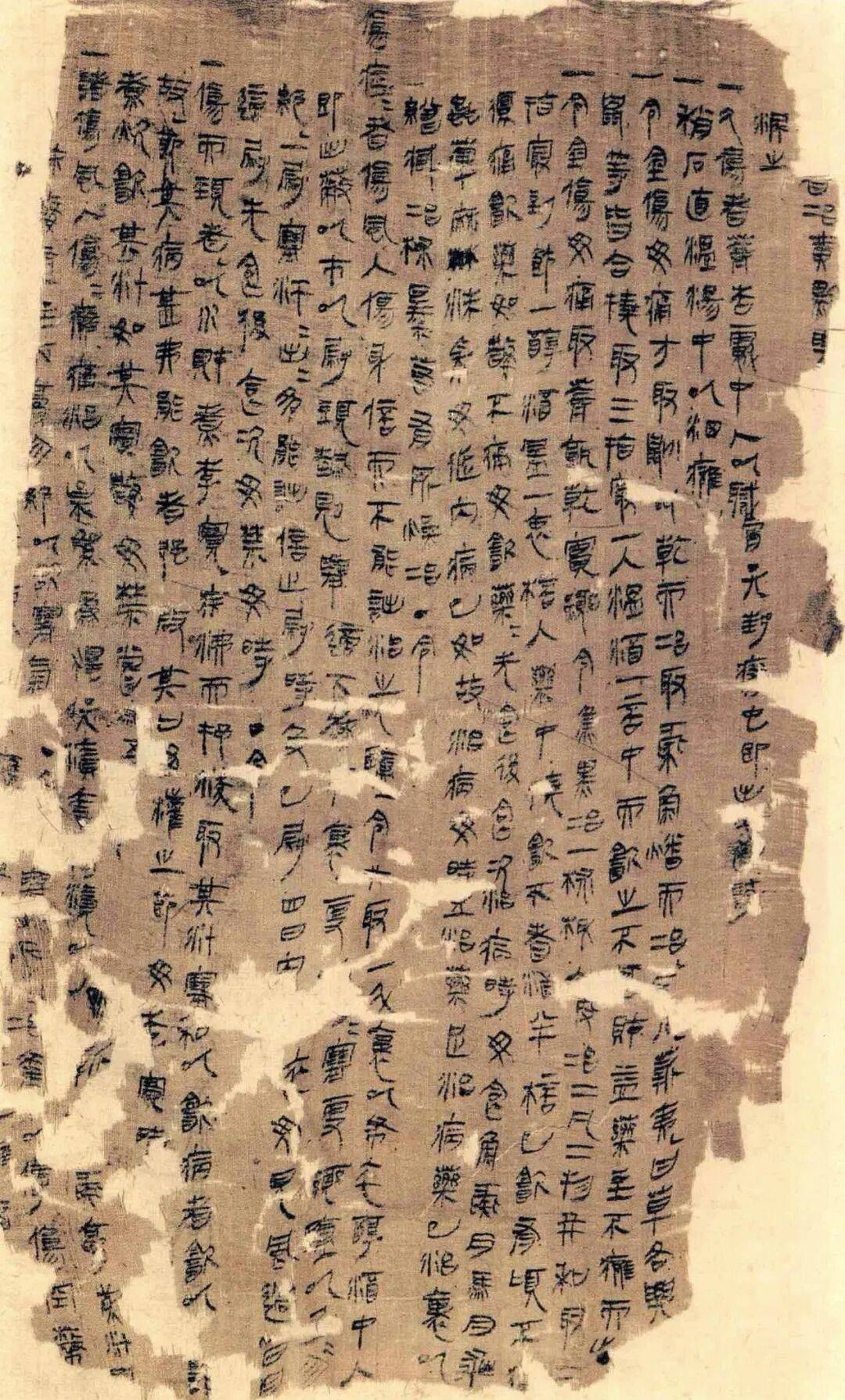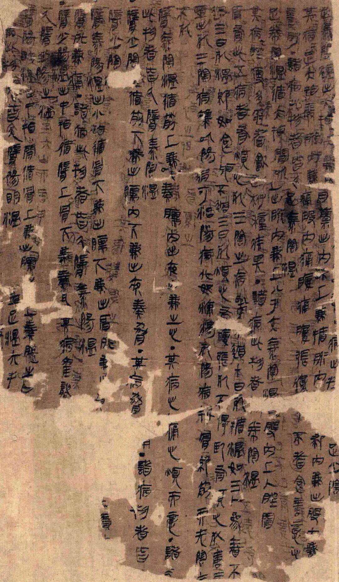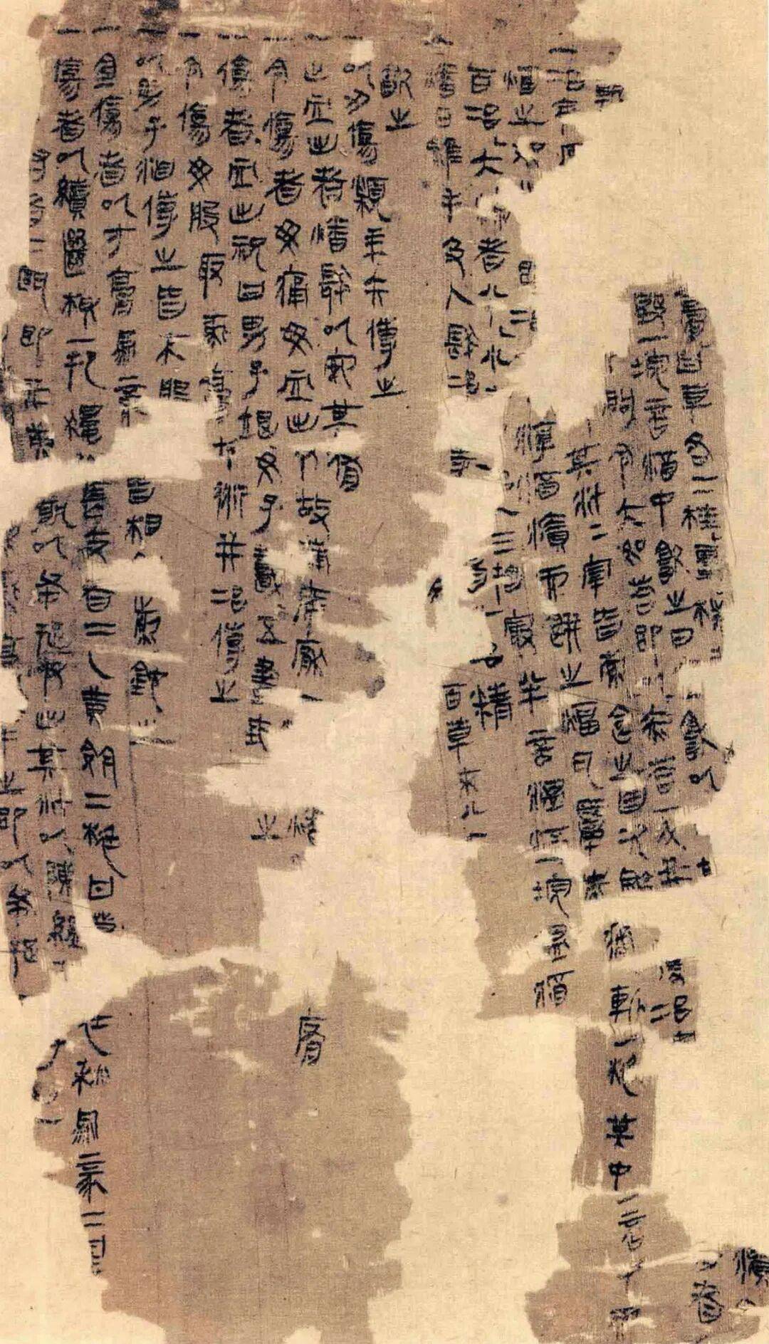 《杂疗方》亦是写在高24厘米的帛上,71行,40块断片。点倾向于线条化,结构也稍稍扁平,帛书字体中,以此与云梦秦简最为接近,书写的年代推测也都是秦汉之际。