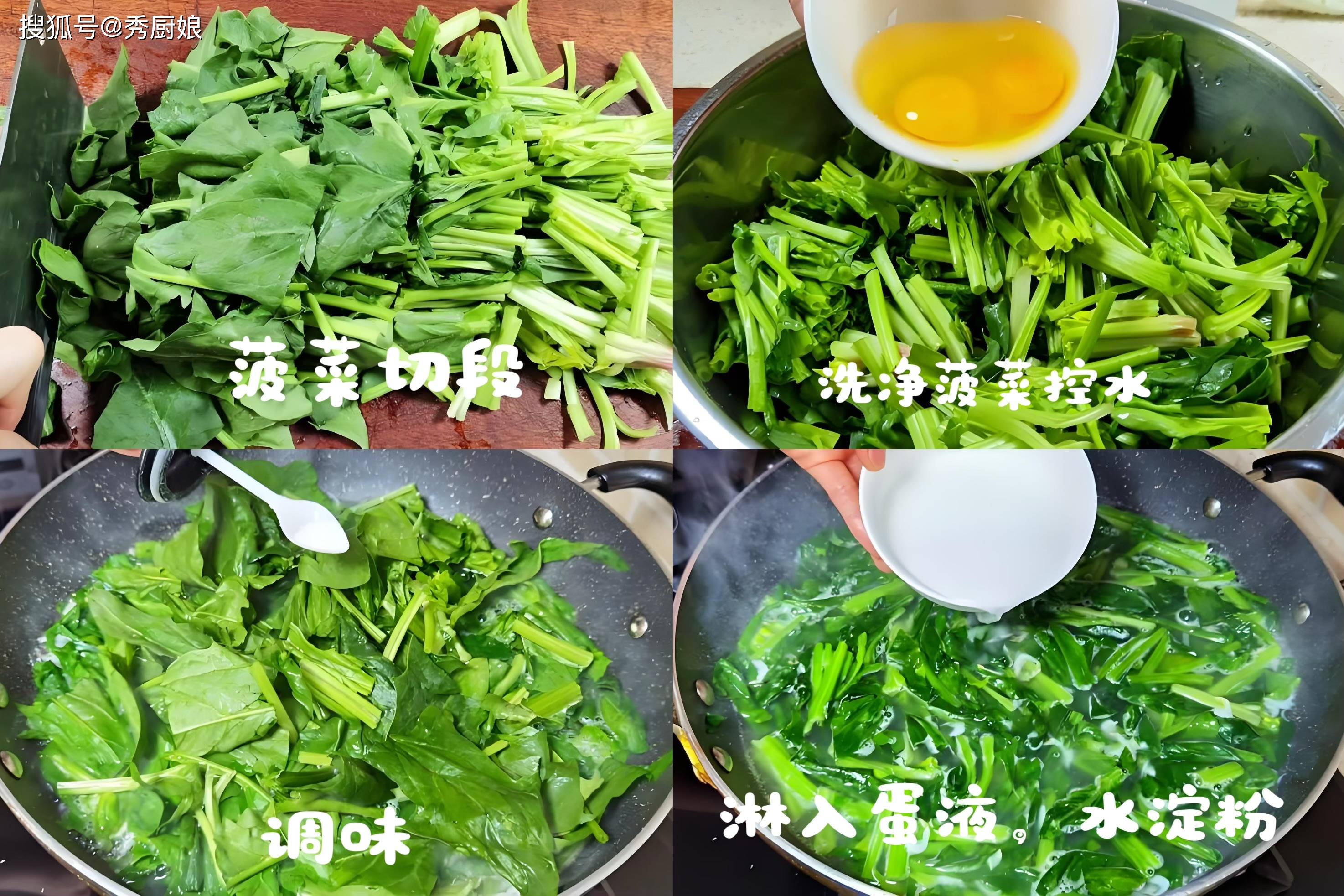 1. 菠菜洗净切段,鸡蛋打散备用。