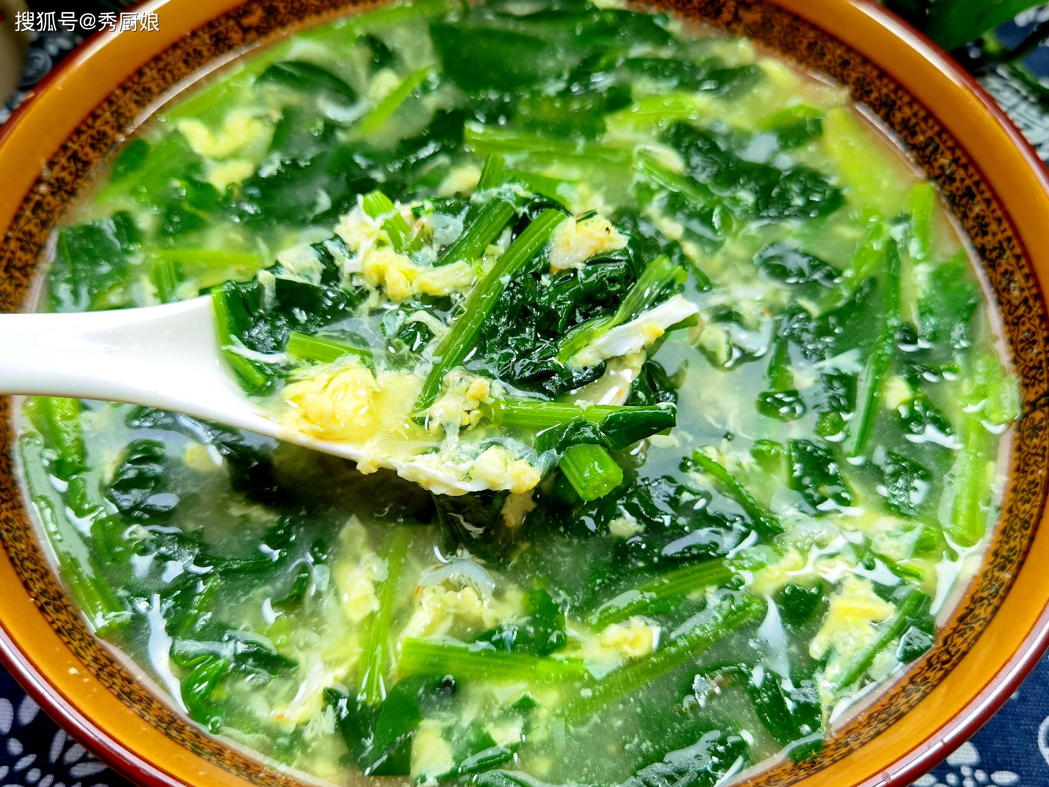 4. 慢慢倒入鸡蛋液,形成蛋花。最后放入焯过水的菠菜,加盐和少许香油调味即可。