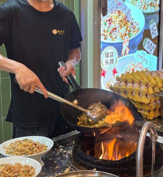 技巧是保障:米饭需提前打散,避免结块;配料分开炒制,控制火候;翻炒时用“颠锅”手法,让米粒均匀受热,形成锅气。