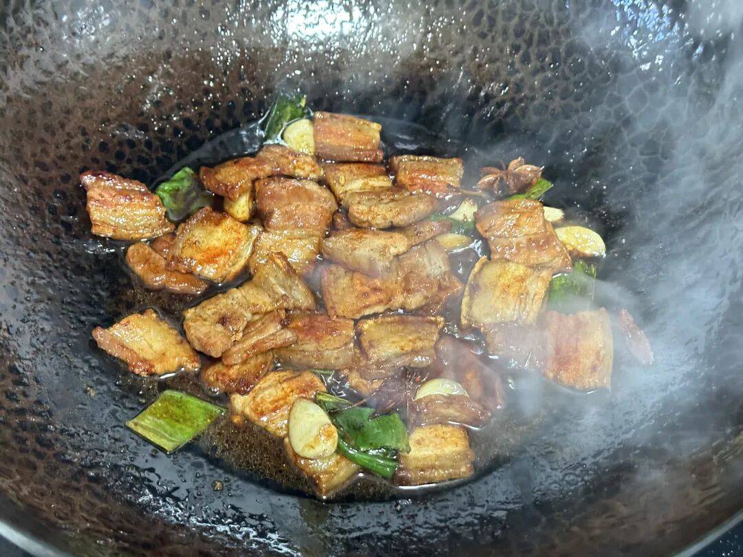最妙的是那块五花肉,在热锅里慢慢煸出油脂,滋滋作响的声音听着就馋了。这时候再把红薯肉倒进去,让每一块都裹上肉香和酱汁,加点开水那么一焖,奇迹就发生了——红薯肉变得软糯Q弹,却又不会烂糊,咬下去满口都是精华汁水。