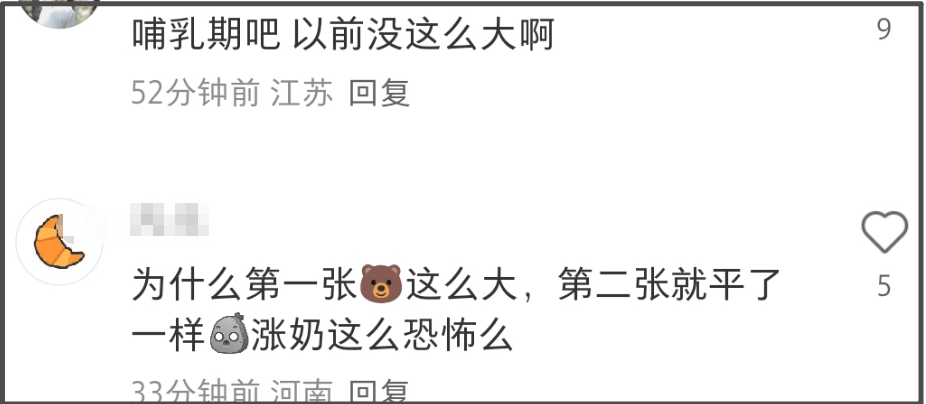 不知是哺乳期亲喂被发现还是照片太暴露,何穗针对发文进行了多次编辑,不仅删除了一张苗条丰满的全身照,还删除了热评,有网友表示她删除的内容是“趁着胸大赶紧多拍两张”,由此看来,她还是介意自己的好身材是因为哺乳期,所以小心思被指出后觉得尴尬,可以说炫耀好身材是人类天性,何穗不必这么敏感啦。