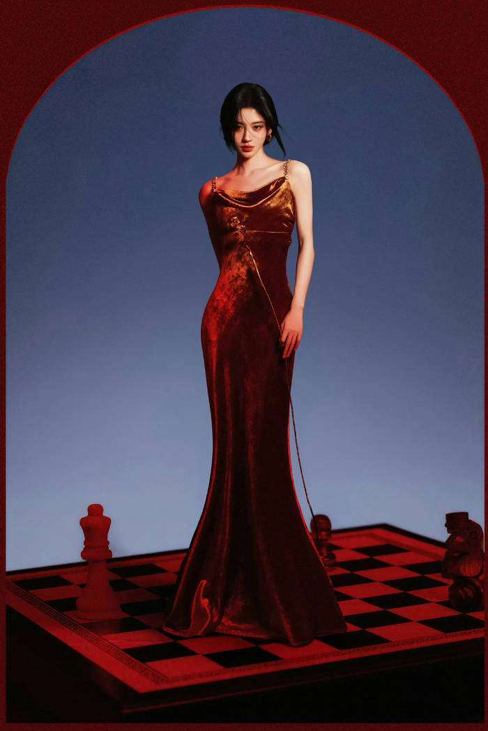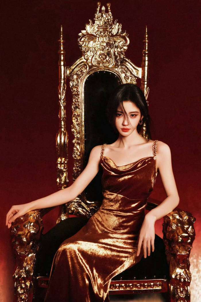 从工作室发布的六宫格组图中可以看出,这套造型的确做足了功夫:24K金箔压印的鳞片纹路,在灯光下闪烁着流动的光泽,吊带设计巧妙地展现了她那精致的锁骨,高腰剪裁完美拉长了身材比例,而手持长剑的姿势更是打破了鞠婧祎一贯的甜美形象,呈现出一种全新的气场。有时尚博主分析指出,造型团队显然是在尝试危险美学的路线——金属光泽与锋利武器之间的视觉冲突,裙摆垂坠的质感营造出了一种行走的鎏金瀑布效果。这一风格,与她去年芭莎派对上展现的蛇蝎美人造型如出一辙,都是对柔美与力量符号的混搭实验,令人不禁想起她身上的那股复杂的美。