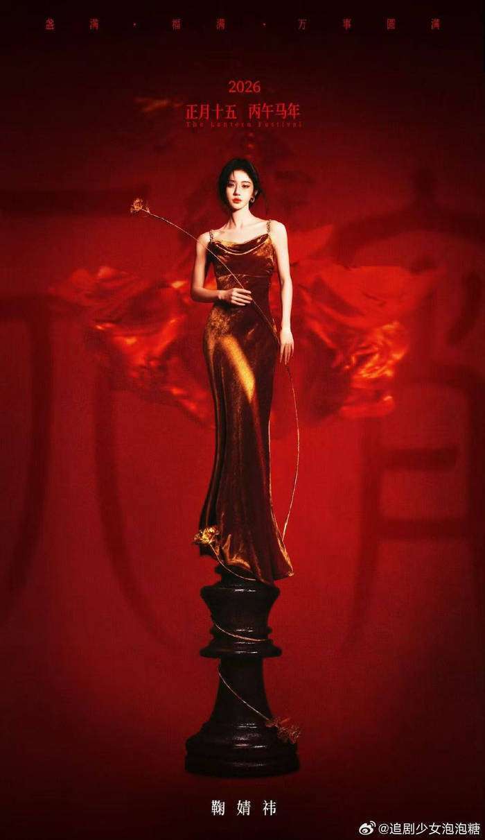 鞠婧祎元宵节鎏金大片引争议,金丝绒吊带裙被指模仿热巴造型?