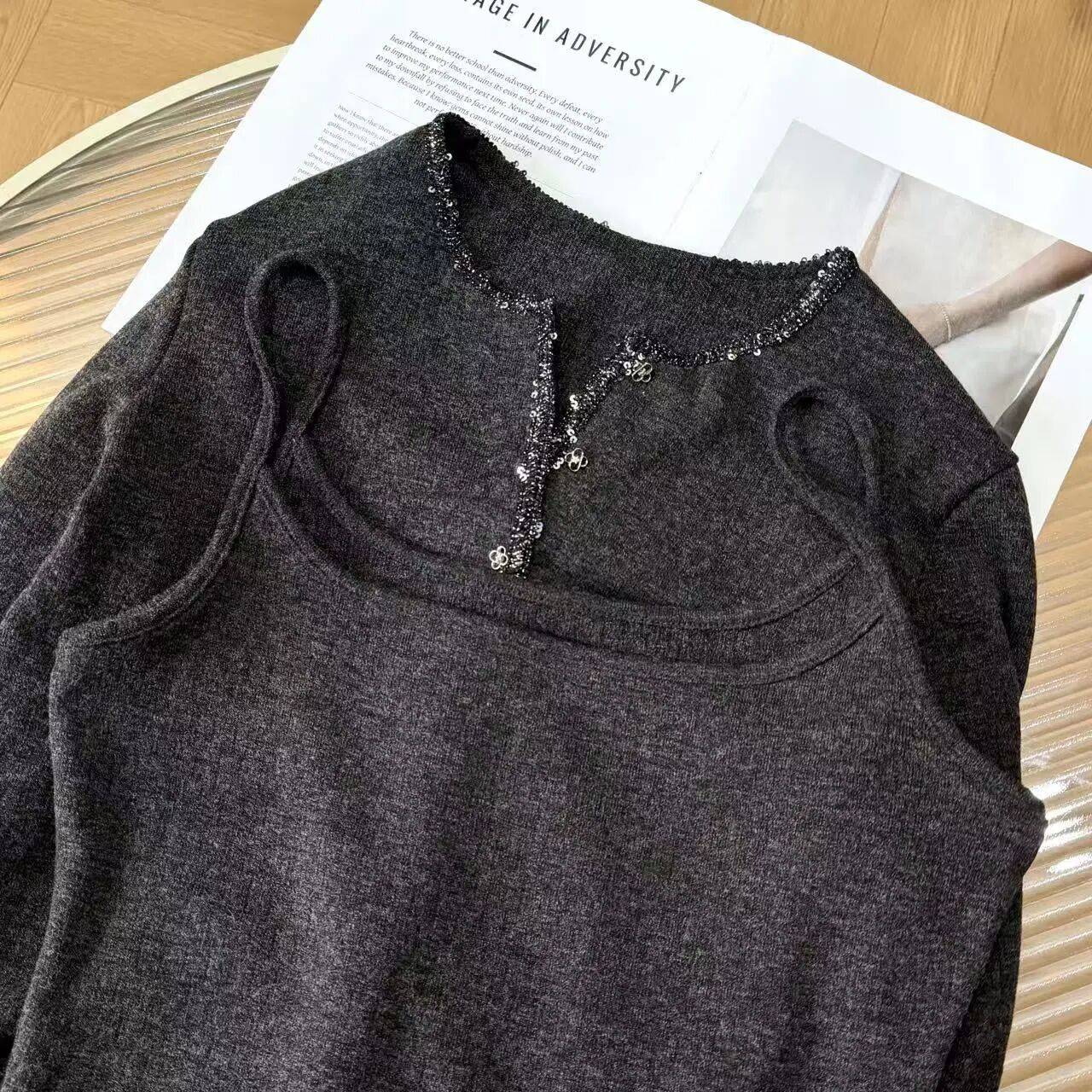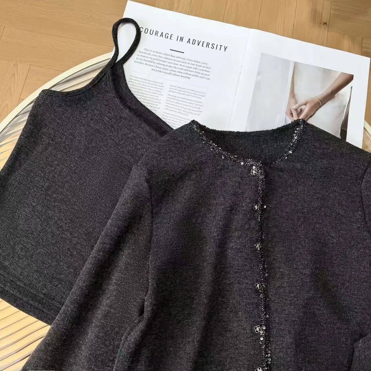 千金法式小香风,针织开衫+内搭小吊带一整套配齐了,懒人也能穿出好好打扮过了的精致感,一整要出门超省心。