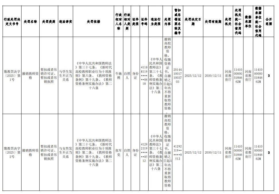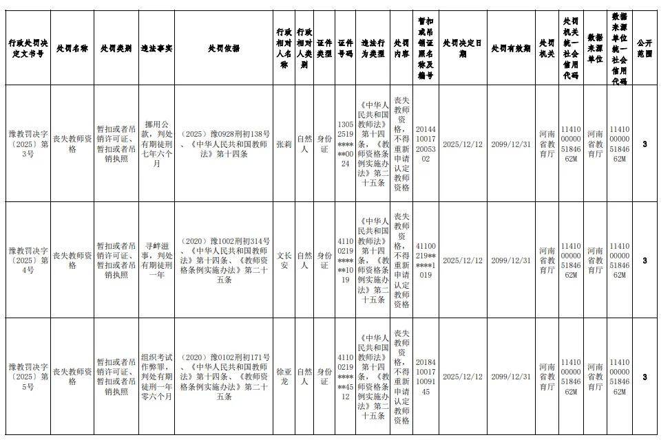 其中,两人因违反师德师风被撤销资格,五年内不得重新申请认定;三人因触犯刑法被剥夺资格,终身不得重新申请认定。该处罚给全体教师敲响警钟。