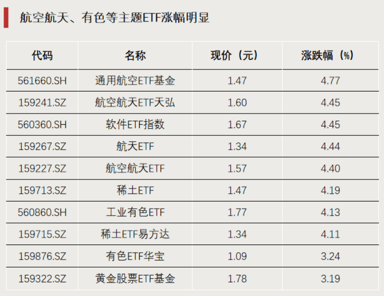 航空航天、有色等主题ETF涨幅明显
