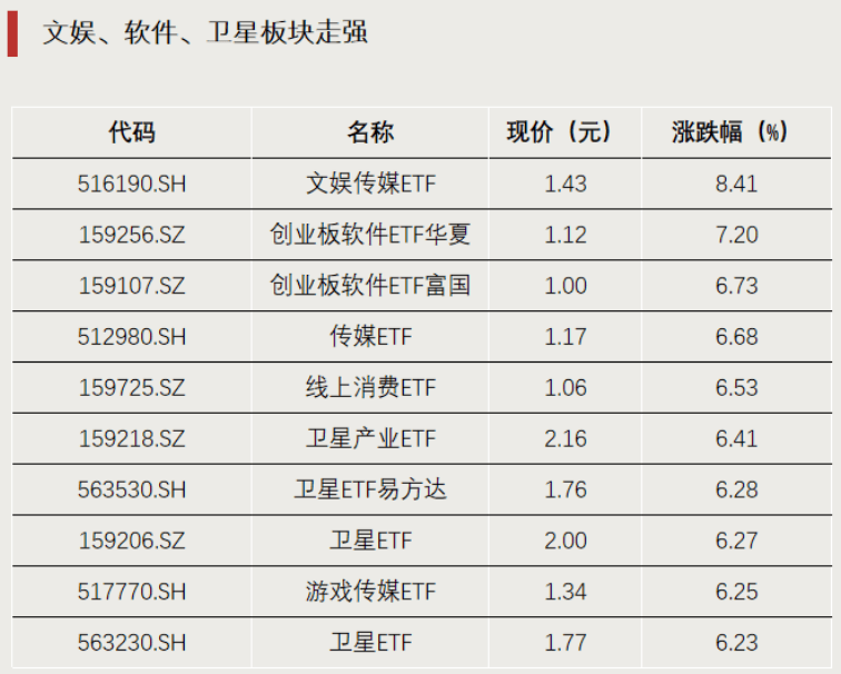 文娱、软件、卫星板块走强