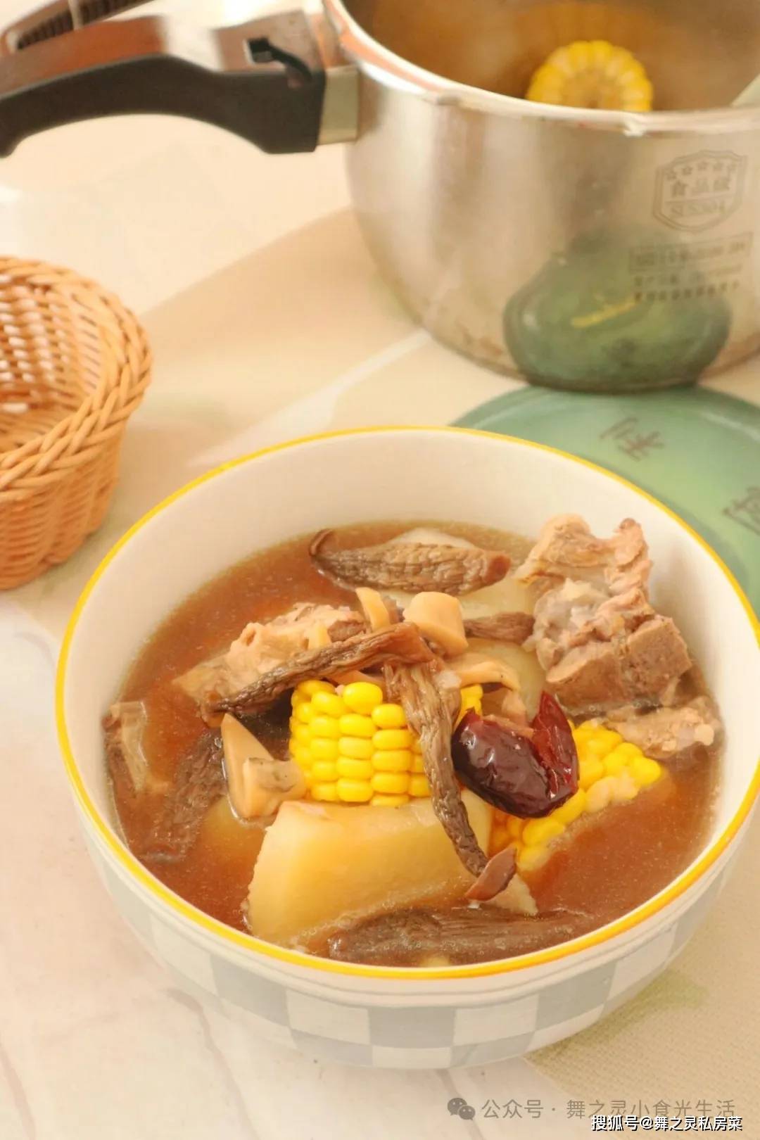 分享【玉米墨鱼干炖排骨汤】