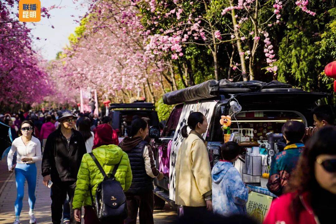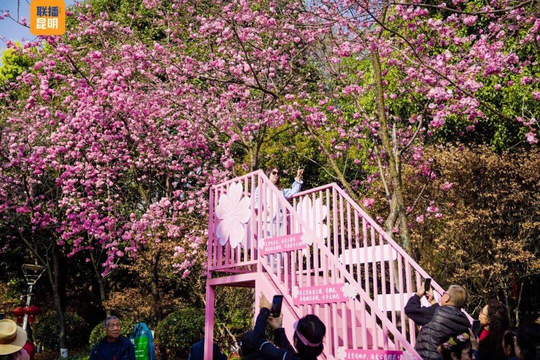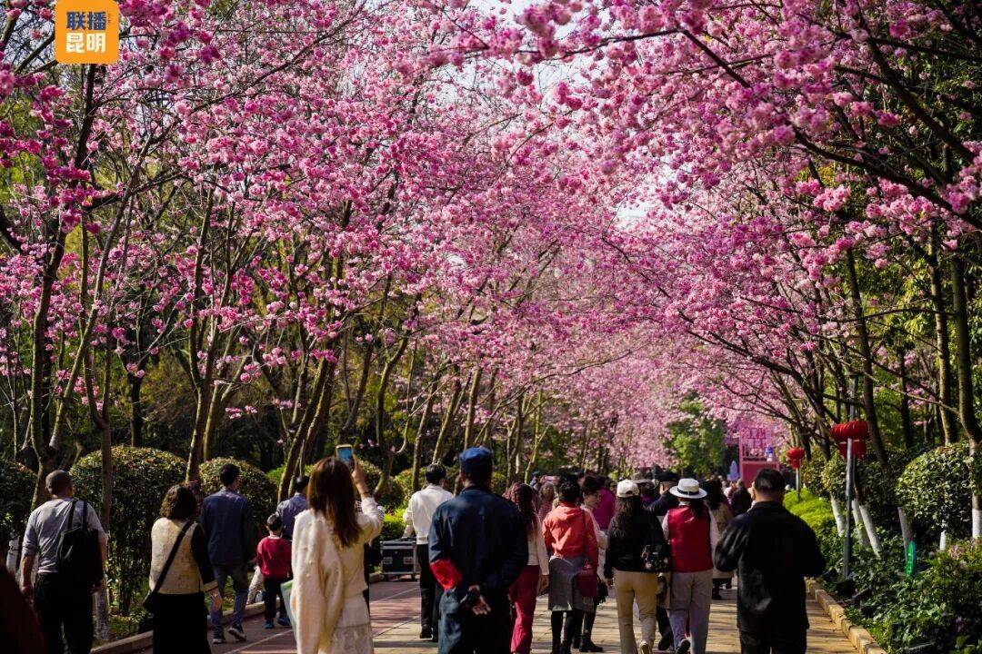 主办方介绍,在为期一个月时间,主舞台化身为全民共享的“百姓开放舞台”。“乡情大舞台”将邀请本地优秀文艺团队带来花灯、歌舞等表演;“樱潮·卡拉永远OK”派对则邀请市民游客在夜樱下齐声欢唱,尽情舞动,感受春日夜晚的激情与浪漫。而这一全民共享的舞台设计,正是对昆明市“春风十里 昆明有你”主题活动的生动呼应——让每一位普通市民都能成为城市文化的主角,在樱花树下绽放属于自己的光彩。