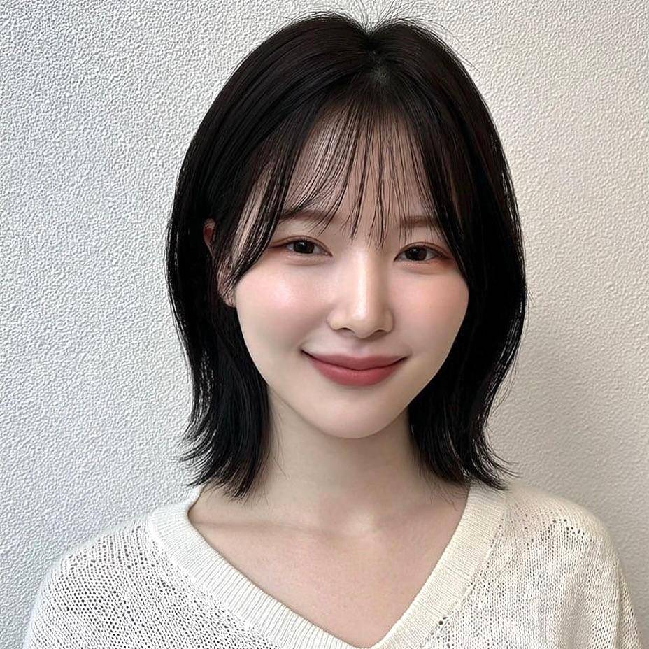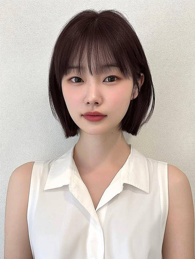 齐刘海波波头凭借软糯的视觉效果,成为减龄首选,轻薄齐刘海恰到好处地修饰额头轮廓,发尾的内扣弧度温柔包裹下颌线,弱化脸部棱角,无论是圆脸还是鹅蛋脸,都能轻松驾驭,自带元气满满的少女感。