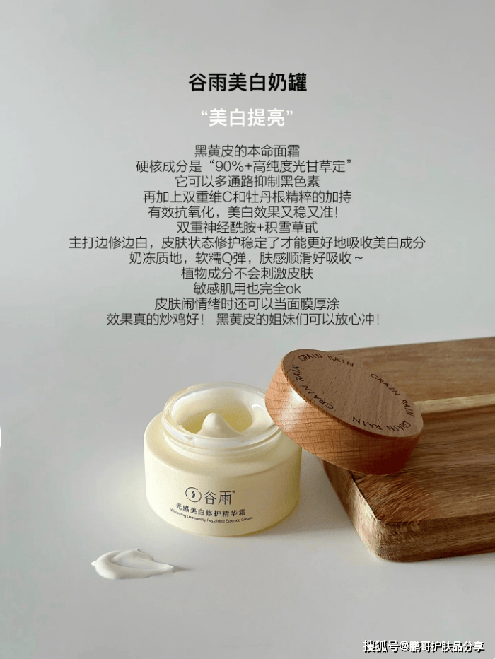 主打的是美白提亮作用,黑黄皮的本命面霜,硬核成分是“90%+高纯度光甘草定”,它可以多通路抑制黑色素,再加上双重维C和牡丹根精粹的加持,有效抗氧化,美白效果又稳又准。