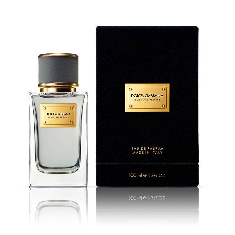 香氛盛装于Dolce&Gabbana Velvet Collection的标志性玻璃瓶中,瓶盖饰以浅灰色天鹅绒,并点缀着金色细节。Velvet Crystal Smoke呈献于精致的黑色天鹅绒礼盒中,镶嵌着Dolce&Gabbana标志性的金色铭牌。