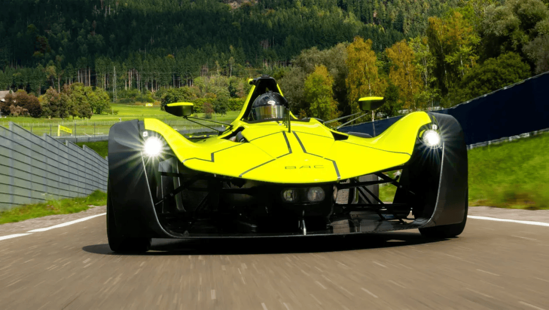 这款车的颜值堪称惊艳:车身外观与Mono R几乎别无二致。其复合材料制成的前后防撞结构,本身就已满足赛车安全标准,因此BAC并未额外为其加装用于提升空气动力学性能的尾翼。