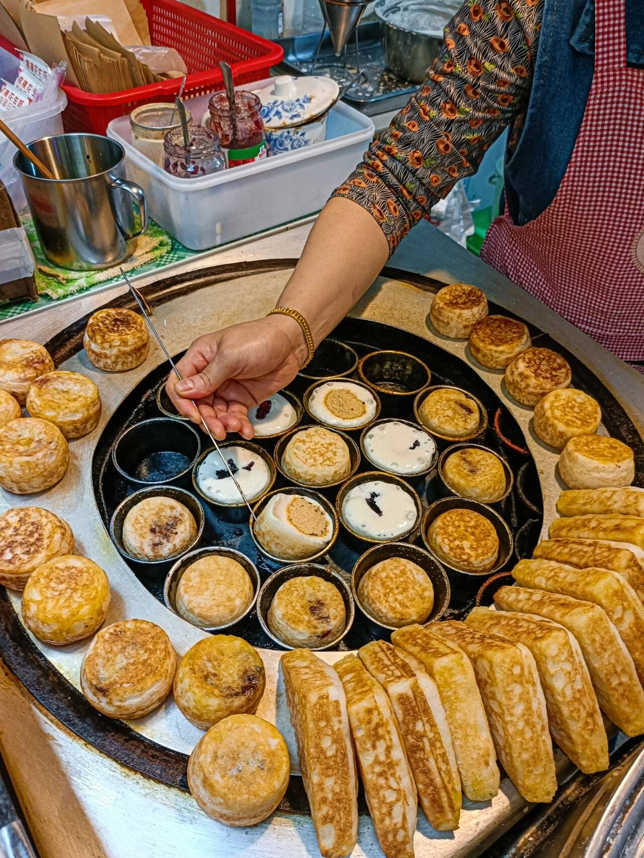 藏在老城区巷弄的小摊,坚守传统工艺。米浆加红糖发酵,用熨斗模具煎制,外皮金黄焦脆,内里软糯带蜂窝,甜香不腻,一口回到童年。