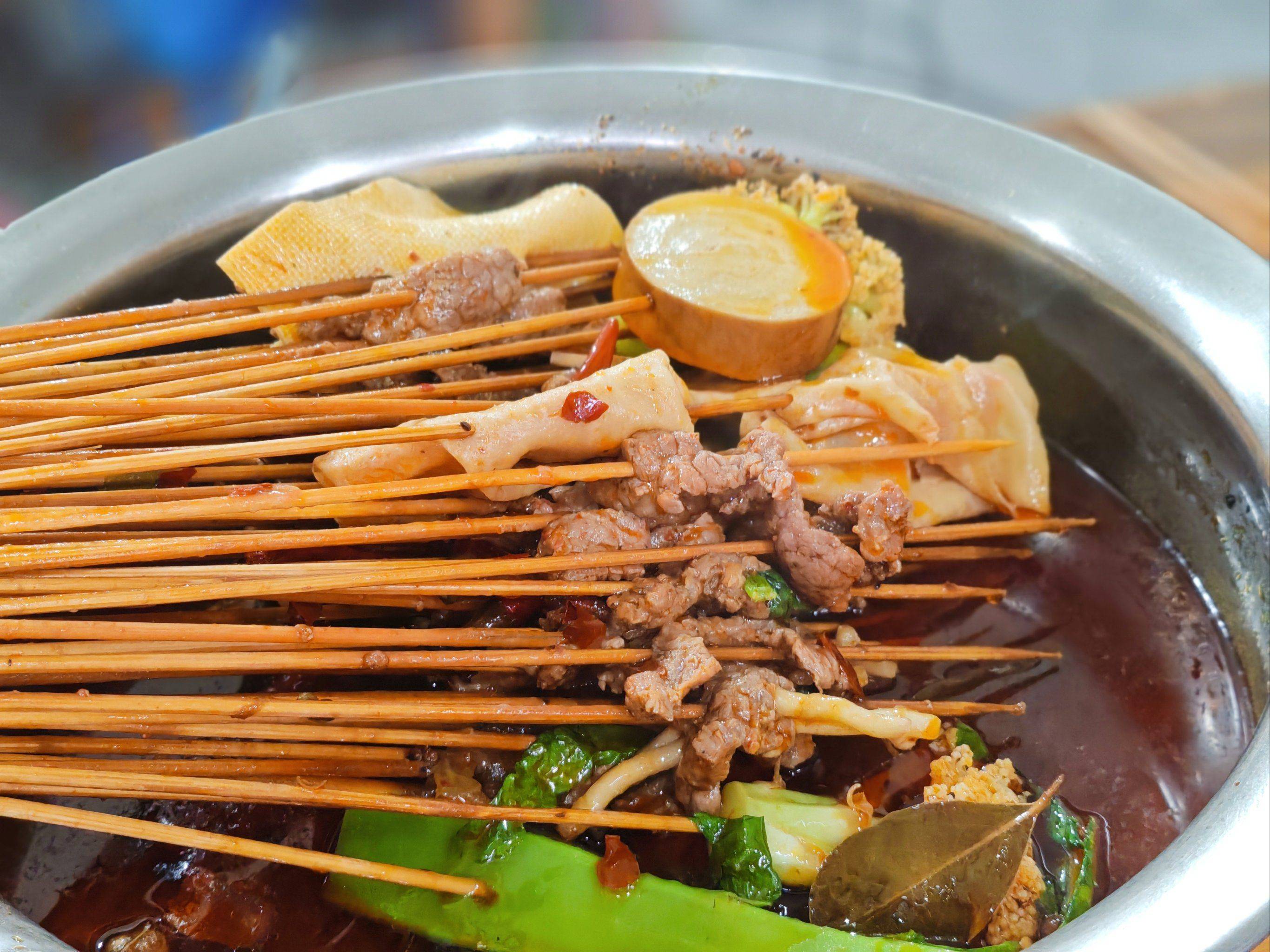 居民楼下的老店,串品新鲜量大,性价比超高。牛肉、郡肝、豆皮吸满秘制红油,麻辣够劲,清汤款则鲜爽开胃,是重庆人日常解馋的首选。
