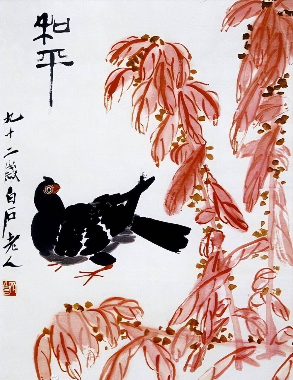 中国的艺术,讲究的就是这种留白的意境。正如古人所言:水满则溢,在艺术创作中,过于充实的画面反而缺乏了生动的气息。齐白石的作品正是通过这种巧妙的空白和简洁的表达,让人们能够在静谧中发现更深层次的内涵。这正是中国艺术独有的魅力,也是它深深打动观者的原因所在。