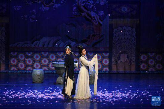 浙江小百花越剧院青春越剧《我的大观园》在桃园展演中心演出(2月25日摄)。新华社记者 黄扬 摄