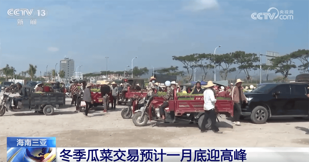 据市场管理方介绍,三亚冬季瓜菜主要发往河南郑州、北京、上海等地。从去年11月份开始,三亚冬季瓜菜陆续进入交易期,到今年1月初,交易量已经达到2500万斤,预计本月底至下月初将迎来交易高峰期。